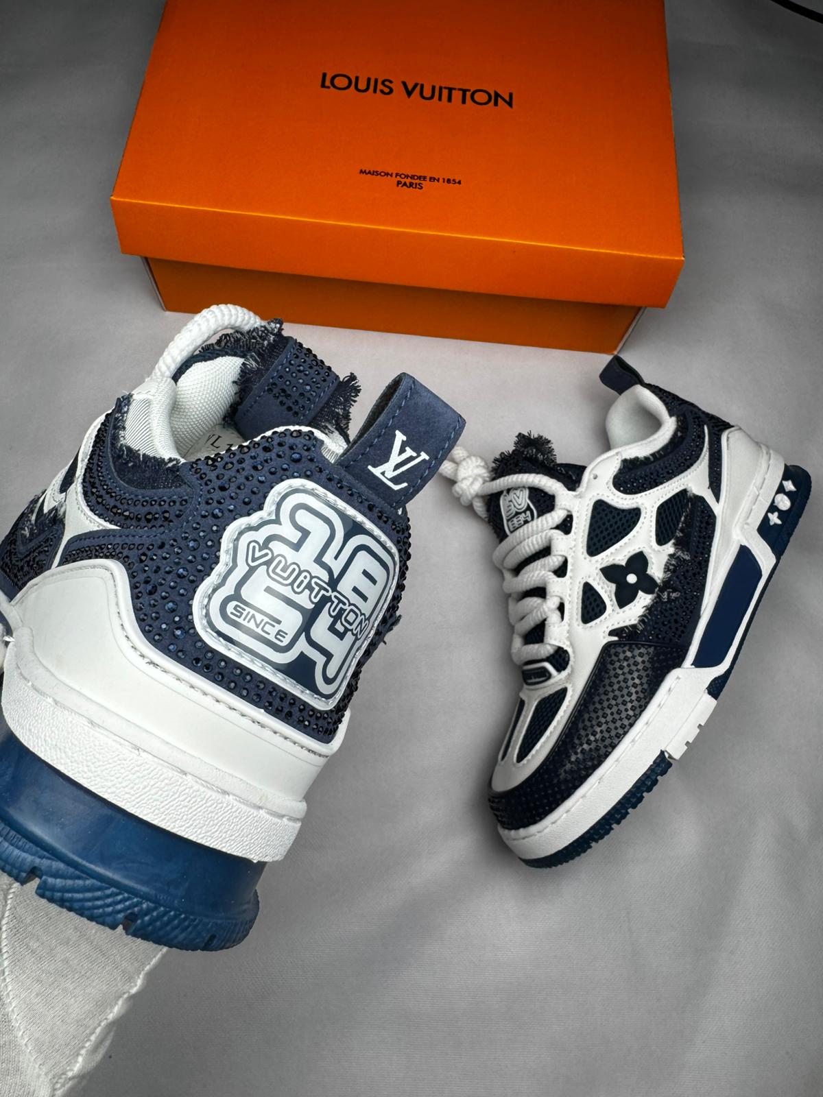 Las Louis Vuitton LV Skate son la combinación perfecta de lujo y estilo urbano. Con su diseño en Blue Shiny Stones, estas zapatillas representan la fusión entre la elegancia clásica de Louis Vuitton y el toque deportivo moderno. El logo LV destacado en el lateral añade un aire de exclusividad que solo esta marca puede ofrecer. 🌟